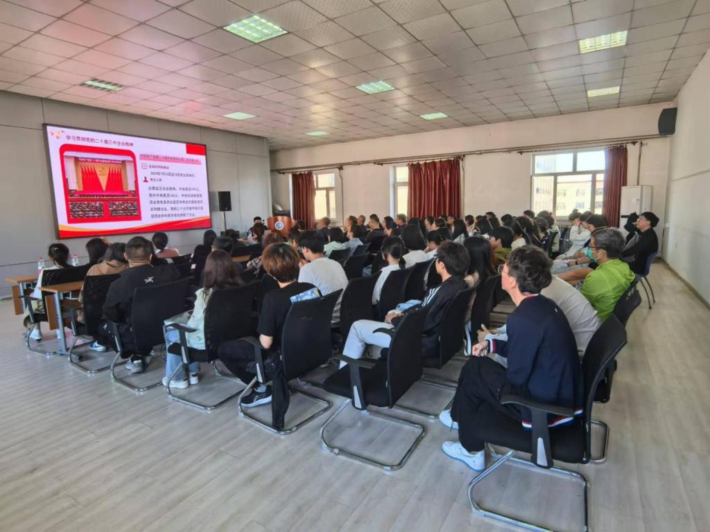 最后,张龙书记进行总结,本次宣讲紧扣全会精神、解读深刻、内容全面、催人奋进。号召全院师生以此次宣讲学习为契机,紧密结合学院和学校改革发展大局,切实提高政治站位,各党支部要通过“三会一课”、主题党日、微信群、网络学习等方式,深入学习贯彻党的二十届三中全会精神,领悟实践要求,确保理论学习与工作实际相结合,把三中全会《决定》要求迅速融入全面深化改革进程,融入学院各项中心工作,融入教书育人、铸魂育人全过程,持续激发师生创新动力和活力,进而转化为推动学校学院高质量发展的强大动力。