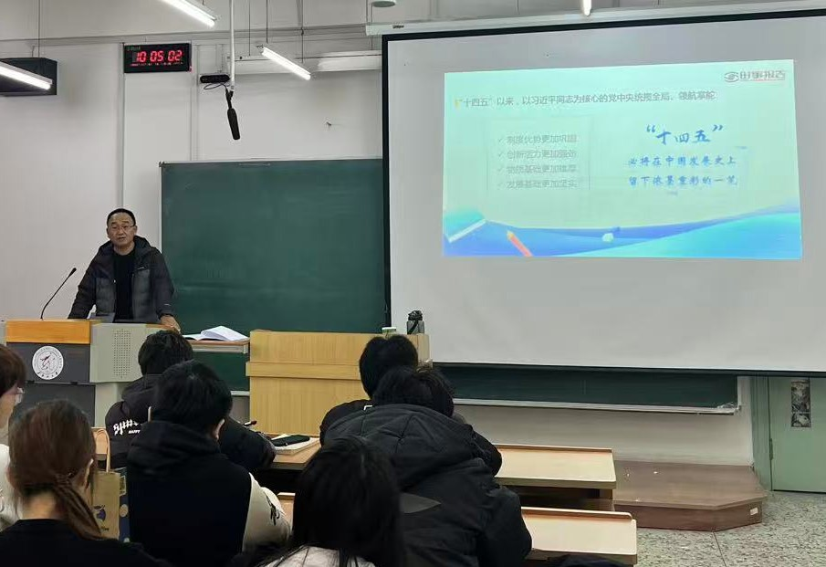 课堂上,张龙书记和唐孝敏院长全方位介绍和解读了国家“十四五”规划的重要成就,同时结合个人经历,用发生在身边的典型案例,不断启发同学们深入思考作为勇担民族复兴大任的时代新人,应如何结合所学专业,实现自身发展与国家建设的同频共振,让同学们在知识的海洋中、思想的碰撞中、情感的体验中收获颇丰。同学们纷纷表示,这是一次时间跨度大、涉及领域广的精彩思政课,使同学们对国家“十四五”规划成就有了更深入地理解,也更加坚定了他们为实现“十五五”规划目标以及中华民族伟大复兴而刻苦学习的决心。