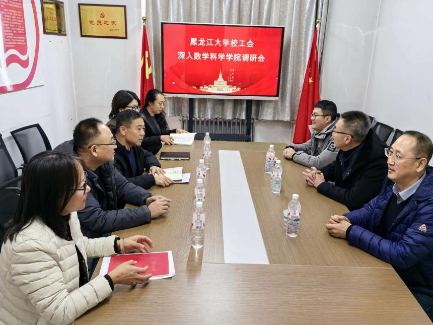 为提升教职工服务保障水平,推动基层工会工作创新发展,2025年11月17日,黑龙江大学工会副主席李文达、张林中等一行莅临数学科学学院开展专题调研。数学科学学院党委书记张龙、院长唐孝敏、党委副书记徐静波、副处级组织员钱海霞、工会主席李春艳陪同调研。