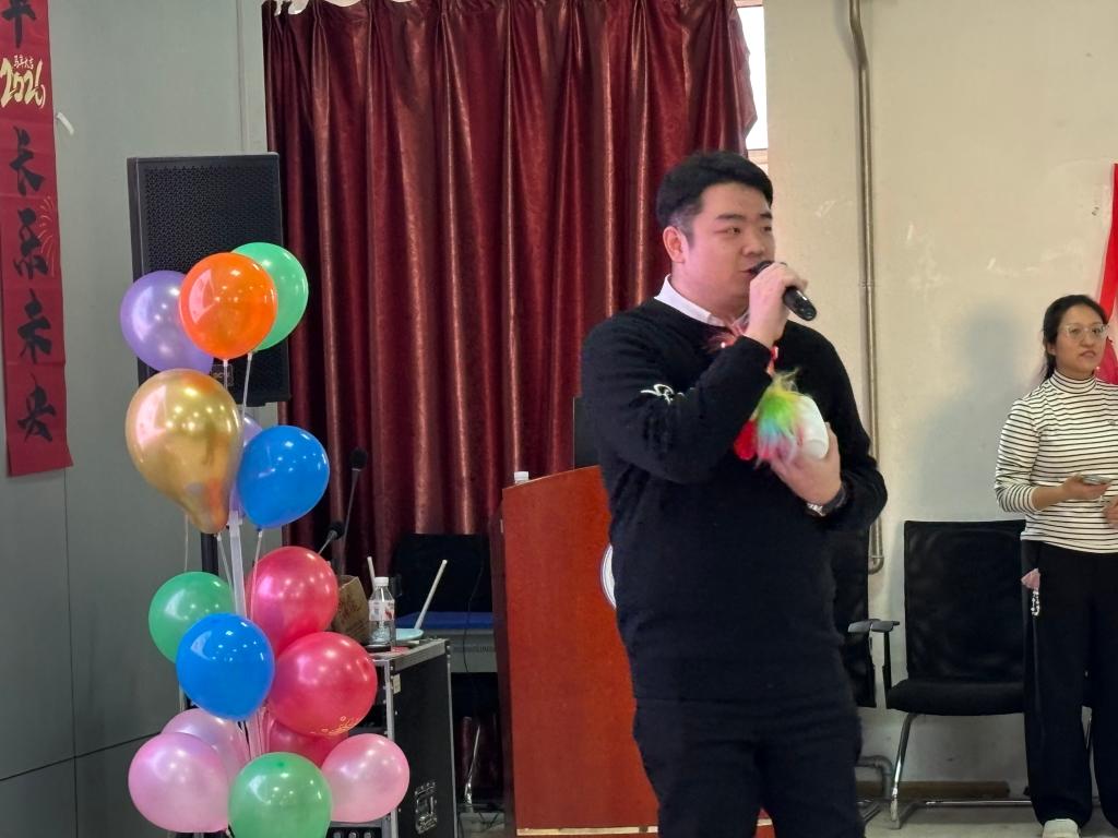 联欢会在学院领导亲切的新年致辞中拉开序幕。领导向全体教师致以诚挚感谢,感谢大家过去一年的全心付出,并送上美好的新年祝愿,期许在新的一年中身体健康、工作顺利,携手谱写学院发展的崭新篇章。