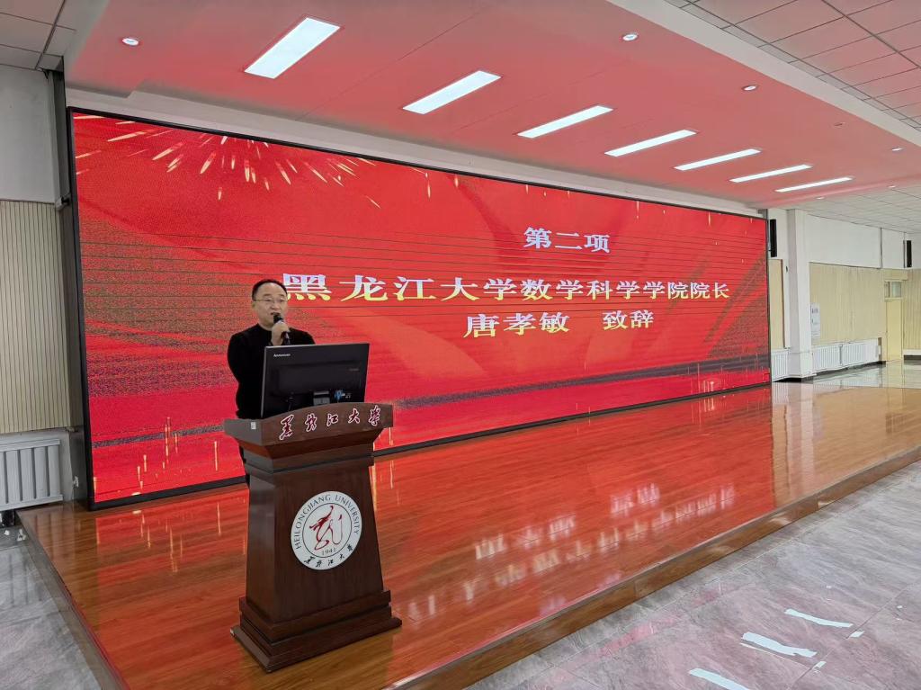唐孝敏在致辞中对与会嘉宾表示热烈欢迎,并介绍了黑龙江大学的办学历史、对俄特色、学科基础及“十四五”发展布局。他指出,数学科学学院基础雄厚,近年来在学科建设、科研与人才培养方面成效显著,特别是2022年获批“数学生态学”二级学科博士点,有力支撑了相关领域的发展。